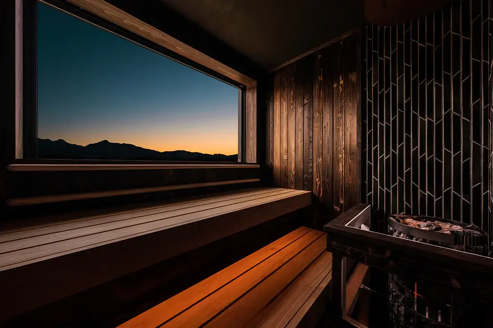 福岡市内から1時間、大分県日田市にある全室プライベートサウナ完備のサウナ旅館。全8室にサウナ・水風呂・温泉・ととのいスペースを完備。三隈川の絶景や屋形船を眺めながら、部屋だけで「ととのう」体験が完結できる。