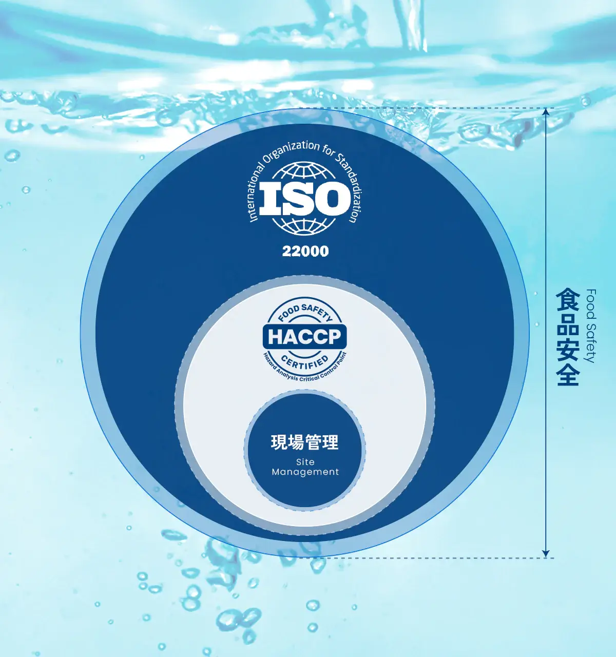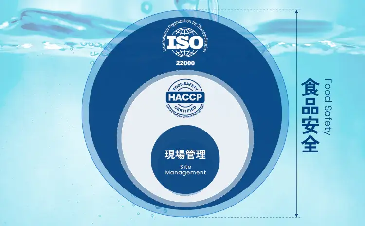 HACCPを組織全体で運用する国際規格で全工程を体系的に管理し、食品安全の基盤を確立しています。