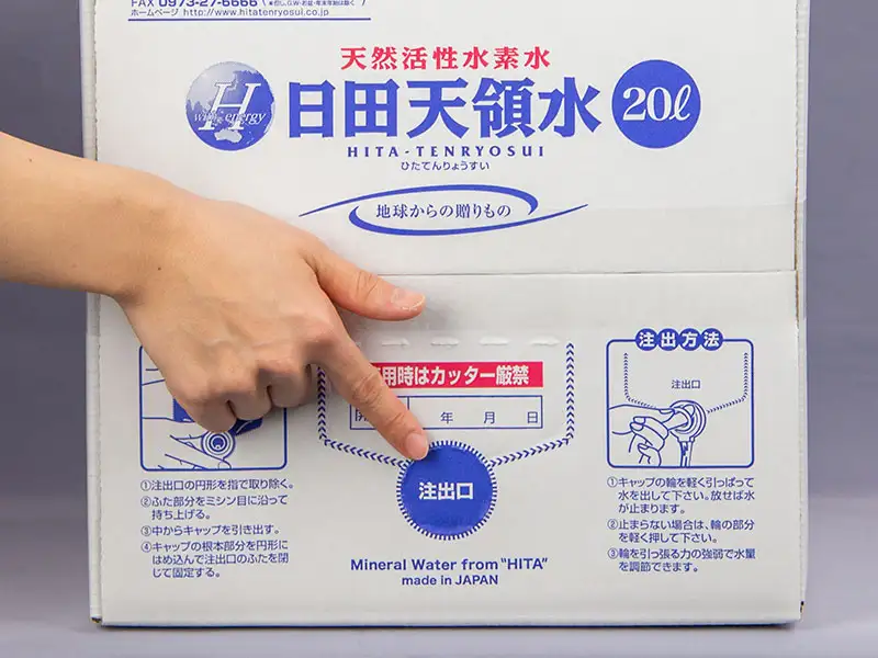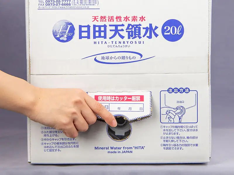 日田天領水は衛生的な工場で無菌充填を行っているため未開封品は全て無菌状態です。バッグインボックスは開封後も長期間に渡り内容物を衛生的に保つように工夫された容器です。注意事項を守って正しくご使用いただければ容器内に外気が入り込まない限り無菌状態が保てます。