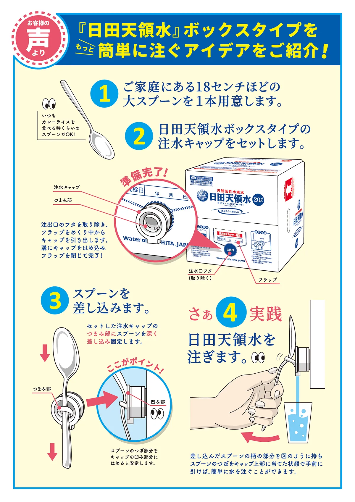 包装・配送などに関するお気づきの点や、ご感想・ご質問等ございましたら、販売店または株式会社日田天領水本社